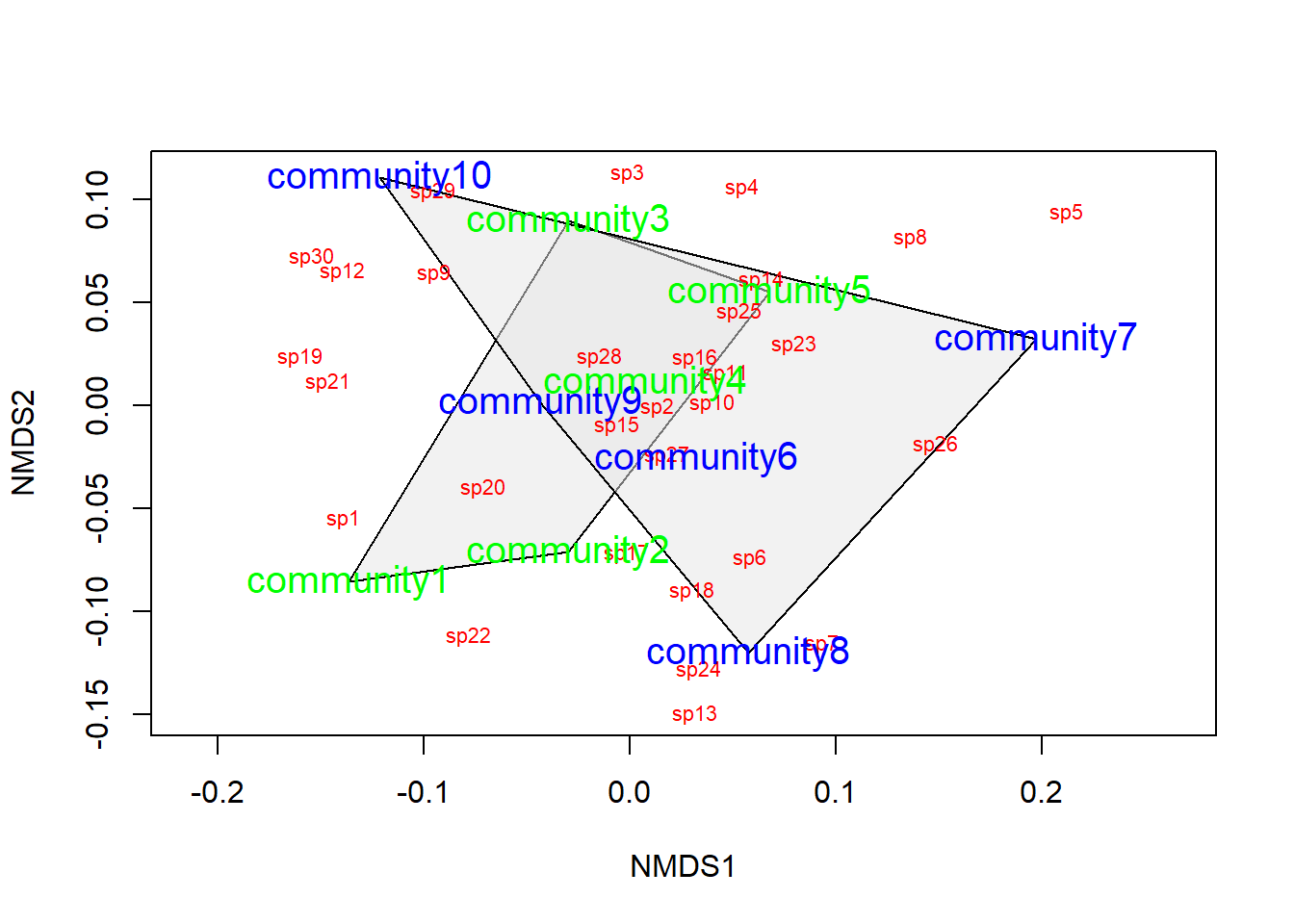 ordihull(example_NMDS$point[grep(i,treat),],draw="polygon",groups=treat[treat==i],col=colors[grep(i,treat)],label=F) }
