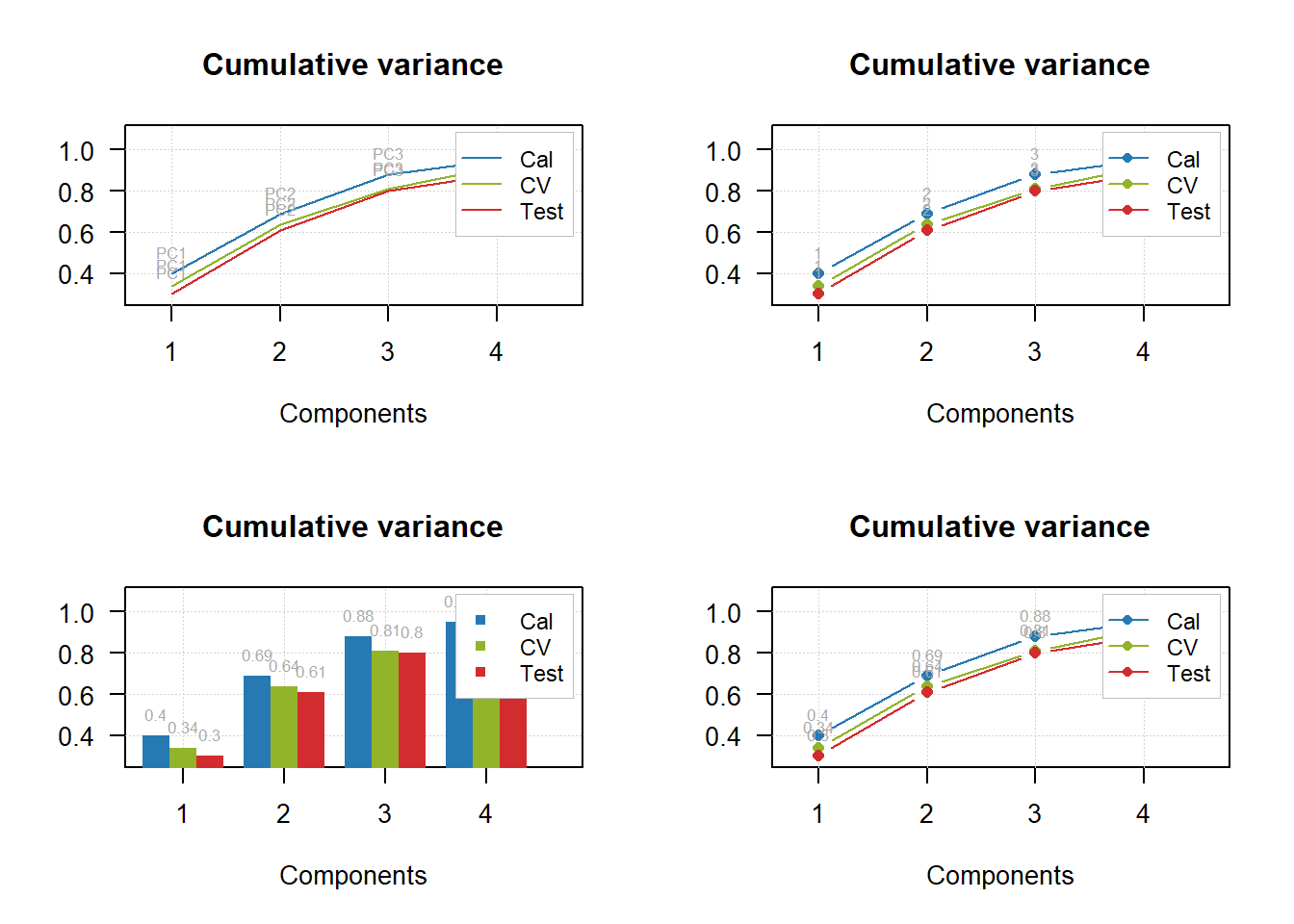 rownames(p) = c("Cal", "CV", "Test")