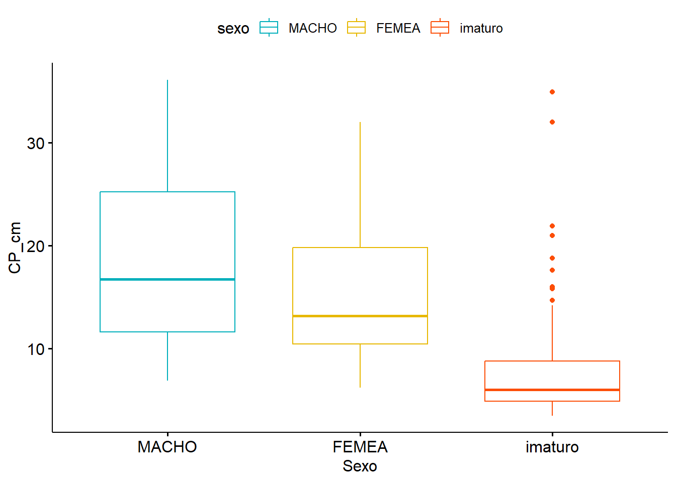 Considere os dados merísticos (ou médições morfológicas) da espécie de peixe Cichla ocellaris (tucunaré amarelo) do reservatório da barragem de Gramame, PB (BRADSTOCK; TOZER; KEITH, 1997) (Figura 10.1). Existem 421 medições do comprimemto total (CT), comprimento padrão (CP) e peso total (PT), além do sexo (MACHO, FÊMEA ou imaturo), e outros descritores da estrutura populacional da pespécie, um conjunto de dados formidável.